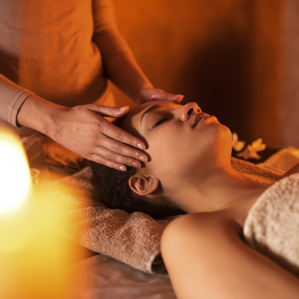 Runde Dein Massageerlebnis ab und gönne deiner Gesichtsmuskulatur und Kopfhaut durch sanfte Streichungen und Berührungen ein wohltuendes Entspannungserlebnis.